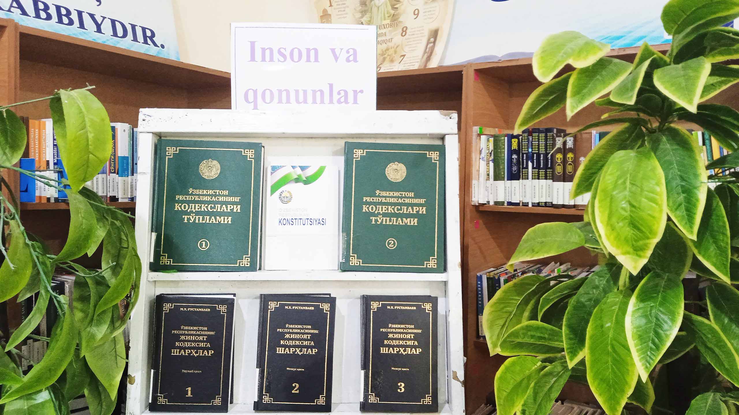 «O’zbekiston Respublikasi Inson huquqlari sohasidagi Milliy ta’lim dasturini tasdiqlash to‘g‘risida»gi 2023-yil 7-fevraldagi PQ-46-son qarori ijrosini ta’minlash maqsadida, Sirdaryo tuman Axborot-kutubxona markazida 14-noyabr kuni «Inson va qonunlar» mavzusida huquqiy adabiyotlar ko‘rgazmasi tashkil etildi.