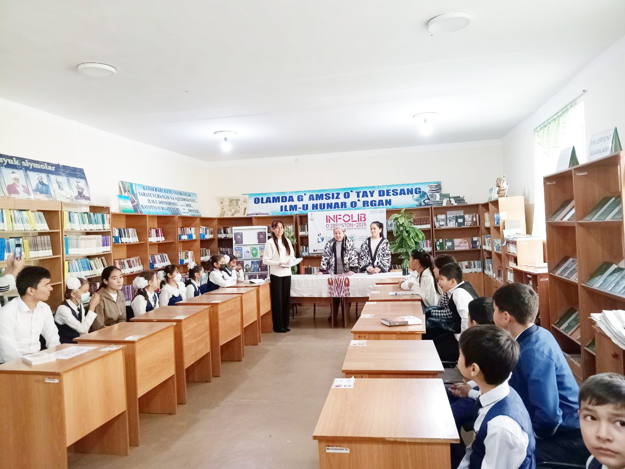 Jonajon O’zbekistonimizning o’z bayrog’iga ega bo’lganiga 34 yil to’lishi munosabati bilan 2025-yil 13-noyabr kuni Sirdaryo tuman axborot-kutubxona markazi o’quv zalida 41-sonli maktab kitobxon yoshlari ishtirokida «Muqaddasdir Vatan bayrog’i» mavzusida tadbir tashkil etildi. Ushbu tadbir davomida kitobxon o’quvchilar o’zlari sevib mutolaa qilgan kitoblarini taqdimotini va Vatanimiz bayrog’ini madh etguvchi she’r va qo’shiqlar ijro etishdi. Milliy qadriyatlarimiz burchagi bilan tanishtirildi va o’quvchilar bir qancha ma’lumotlarga ega bo’lishdi. Tadbir so’nggida ishtirokchilar esdalik sovg’alar bilan taqdirlandilar.